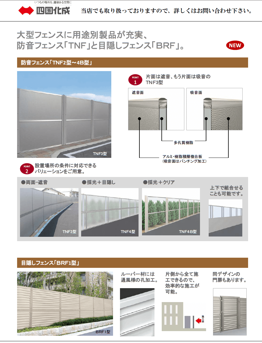 四国化成 大型フェンスが充実-遮音・吸音「TNF」・目隠し「BRF」