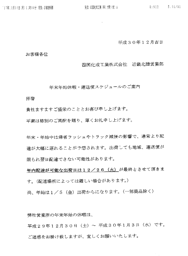 年末年始の出荷について