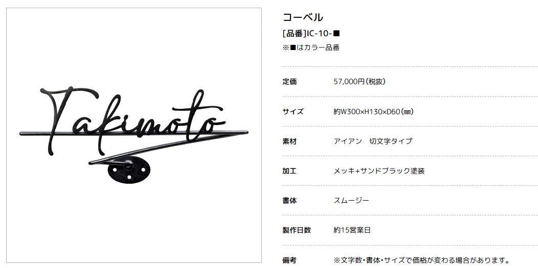 美濃クラフト IC-10- Corbel コーベル アイアンクラフト表札ページ更新致しました。 2025年10月28日 美濃クラフト IC-10- Corbel コーベル アイアンクラフト表札はこちら Tweet Facebookコメント «前 次» What's New