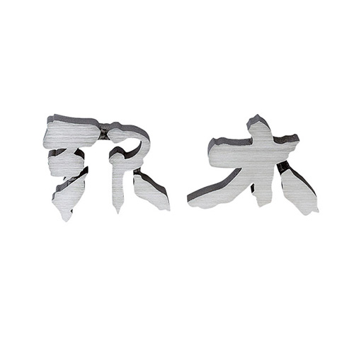 表面がつるっとしたヘアライン仕上げの鋳物文字。