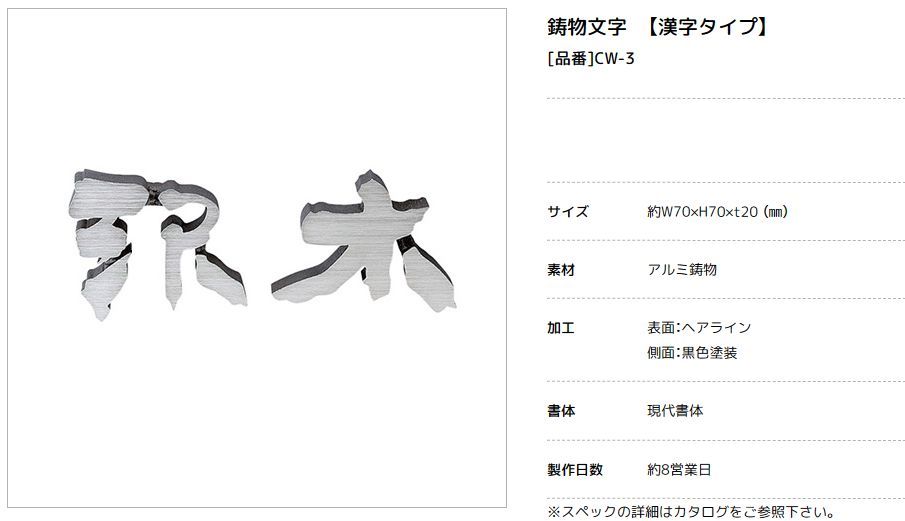 美濃クラフト CW-3 鋳物文字 漢字タイプ アルミ鋳物表札 1文字あたりのお値段です [廃盤商品の為、在庫分のみの販売となります]