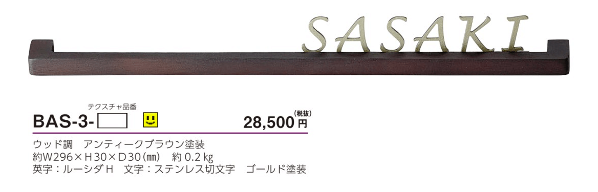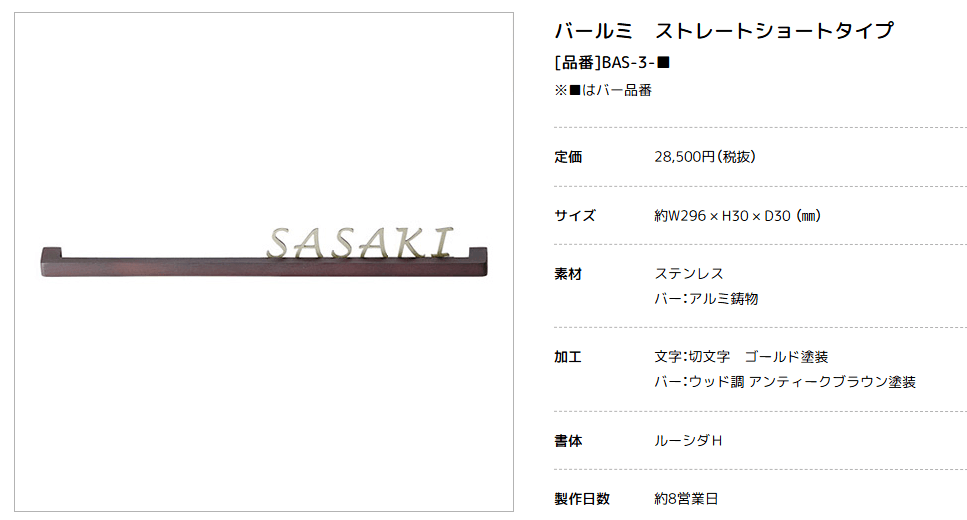 美濃クラフト BAS-3- バールミ BARME表札 ストレートタイプ [メーカー価格表の33%OFF+送料無料で販売中]