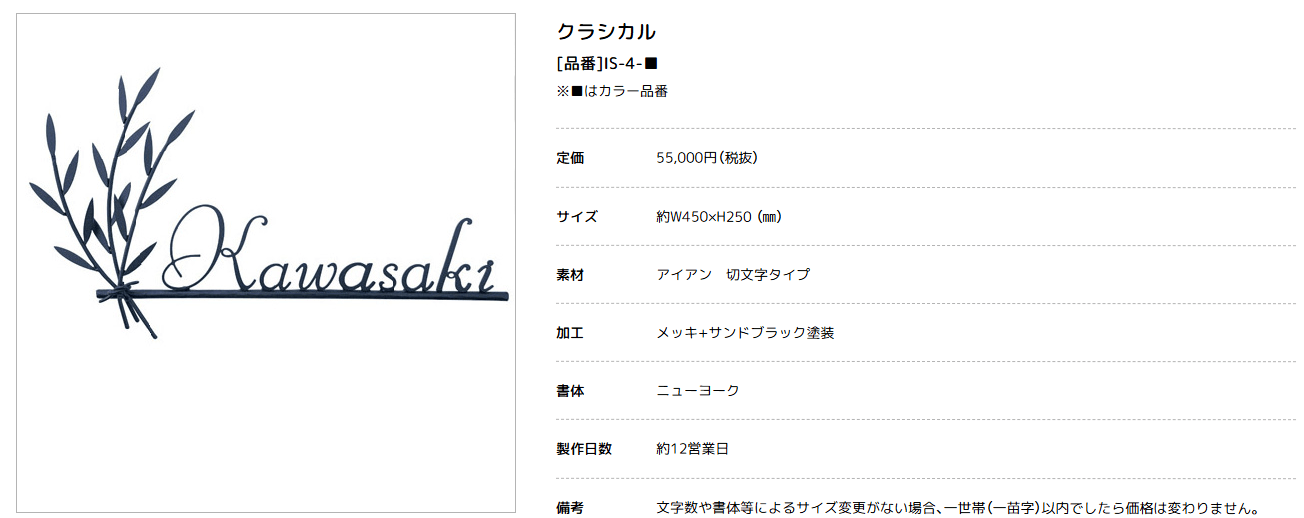 美濃クラフト IS-4- クラシカル(Classical) アイアンクラフト表札 [メーカー価格表の34%OFF+送料無料で販売]