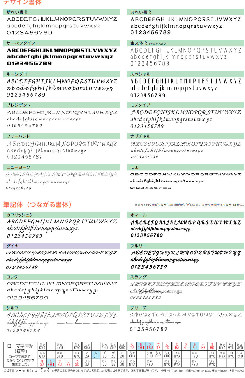 書体変更によりサイズとお値段が変わる場合があります。)