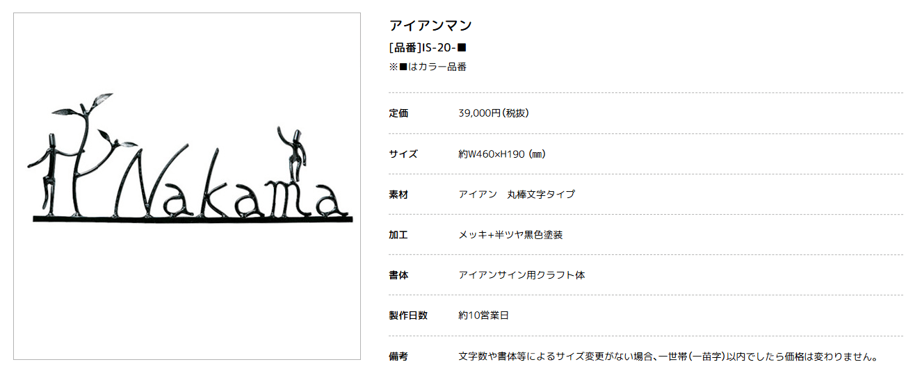 美濃クラフト IS-20 アイアンクラフト表札 アイアンマン [IS-20 メーカー価格表の33%OFF+送料無料で販売]