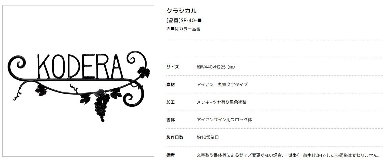 美濃クラフト SP-40- クラシカル(Classical) アイアンクラフト表札 [廃盤商品となります。在庫がある分のみ対応を致します。]