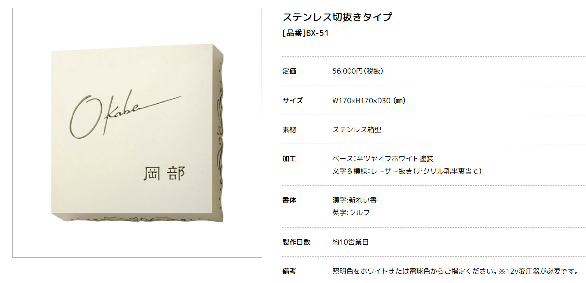 美濃クラフト BX-51 ストライト Stright LED表札 ステンレス切り抜きタイプ [BX-51 メーカー価格表の33%OFF+送料無料で販売中]