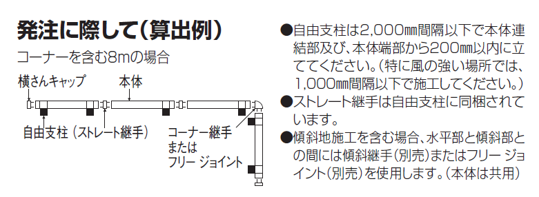 上記のような場合(コーナーを1ヵ所含む8mの場合)