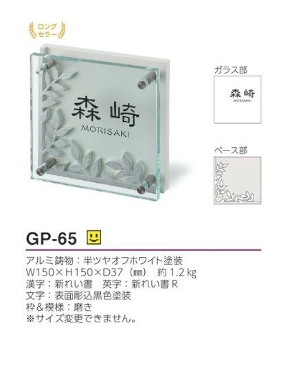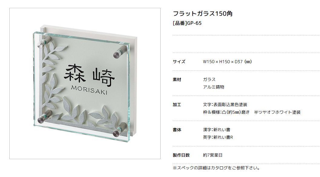 美濃クラフト GP-65 フラットガラス表札 150角 [廃盤商品となります。在庫がある分のみ対応を致します。]