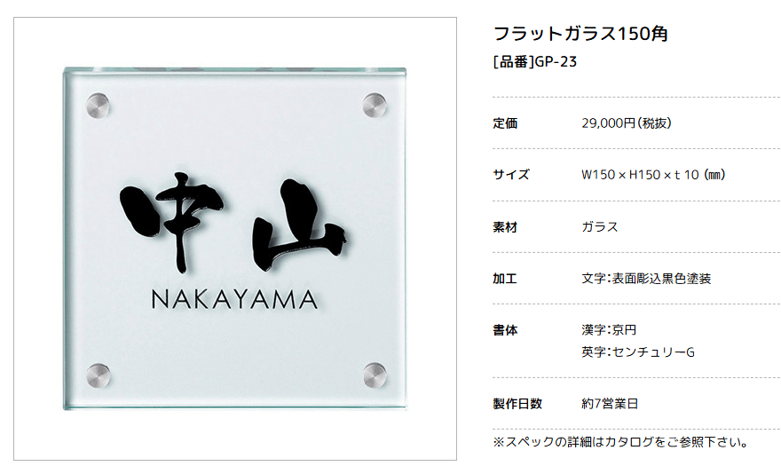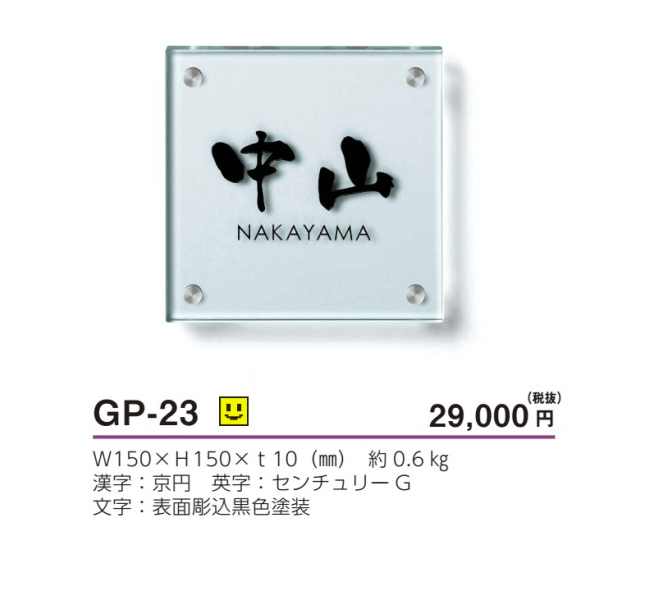 美濃クラフト GP-23 フラットガラス表札 150角 [メーカー価格表の33%OFF+送料無料]