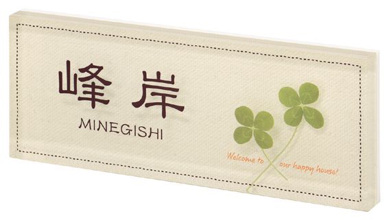 「幸福のイメージ 四葉のクローバーの表札を使ったアクリル表札です」によって映し出された陰影が奥行感ある立体的な