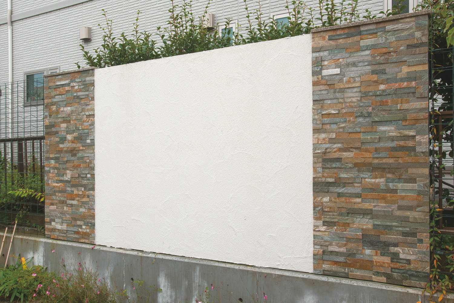 「貼り付け可能な天然石外装材+笠木です」