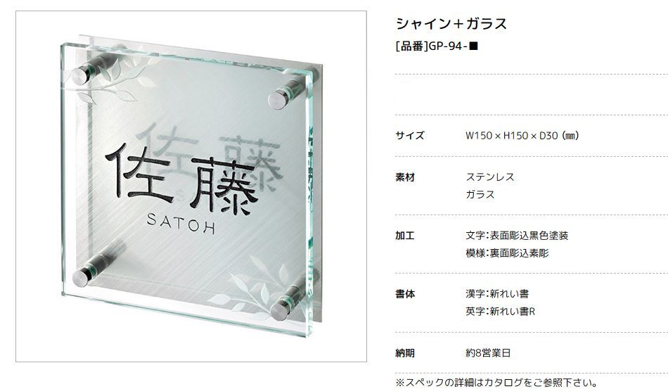 美濃クラフト GP-94 フラットガラス表札 [メーカー価格表の33%OFF+送料無料でお届けします]