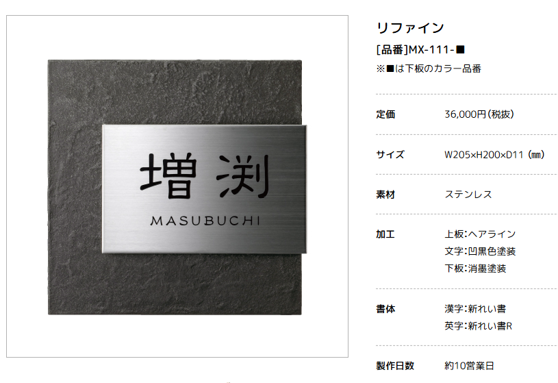 美濃クラフト MX-111- リファイン Refine ステンレス表札 [メーカー価格表の33%OFF+送料無料]