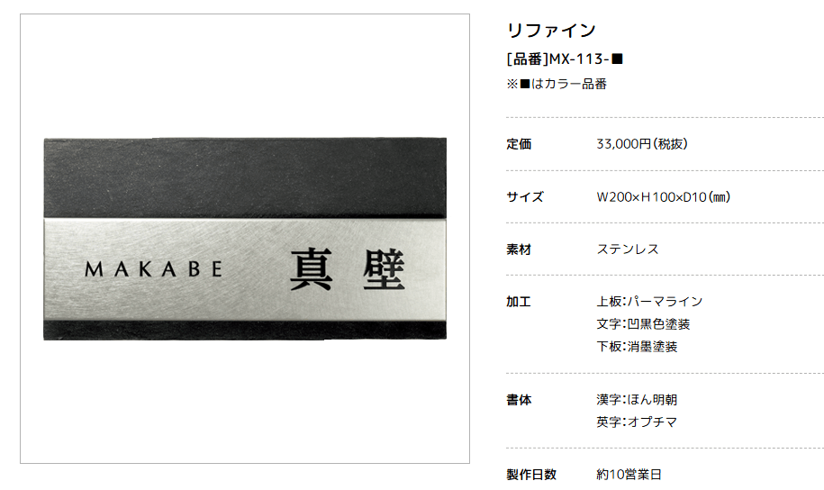 美濃クラフト MX-113- リファイン Refine ステンレス表札 [メーカー価格表の33%OFF+送料無料]