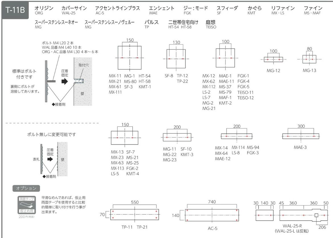 ・オプションで、ボルト無しに対応可能(両面テープ+接着剤)