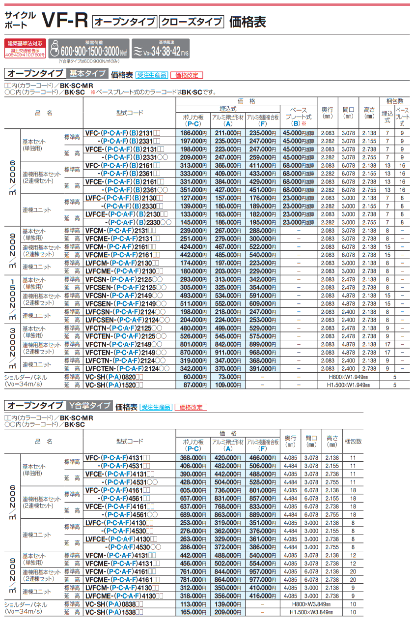 四国化成 サイクルポート VF-R オープンタイプ クローズタイプ [VF-R メーカー価格表の31%OFF+送料無料で販売中]