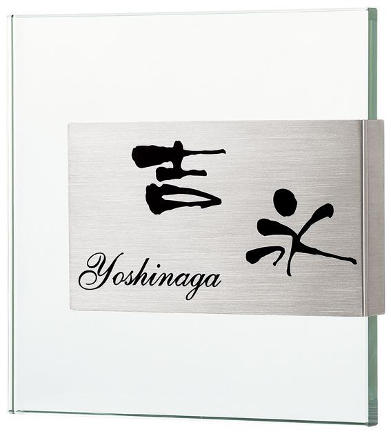 透明ガラス+ステンレス表札