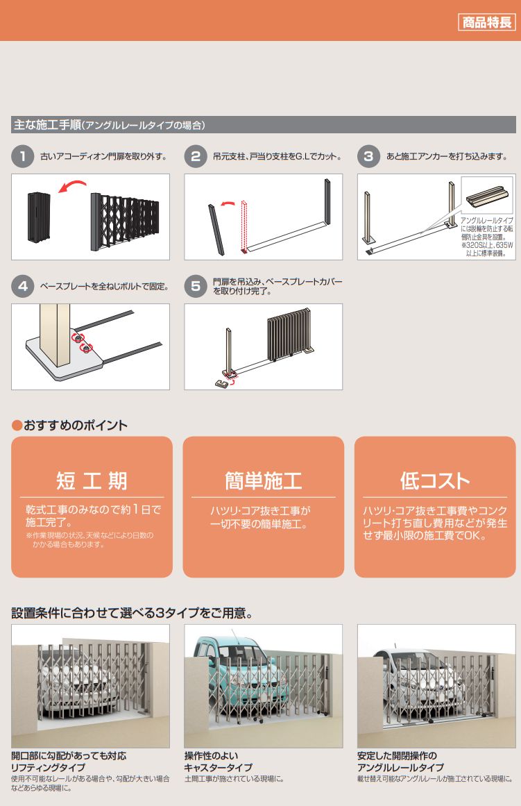 四国化成 リフティングアコーHG-R リフォーム対応アコーディオン門扉 [LTHGR カタログ価格表の半額+送料無料で全サイズを販売中]