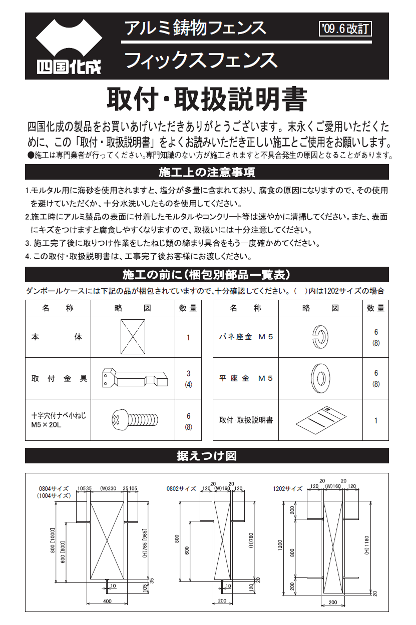 四国化成 フィックスフェンス ガーデニィ M1 M2型 1型 2型