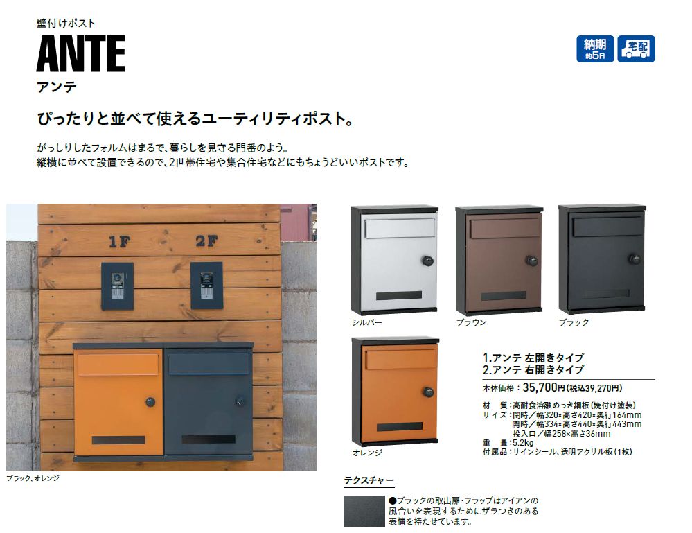 「並べて使う事が可能、集合住宅にも対応可能なポスト」です。