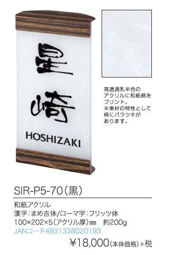 丸三タカギ SIR-P5-70(黒) 和紙アクリル 四国化成 クレディ門柱1型/2型/3型 照明付きタイプ専用