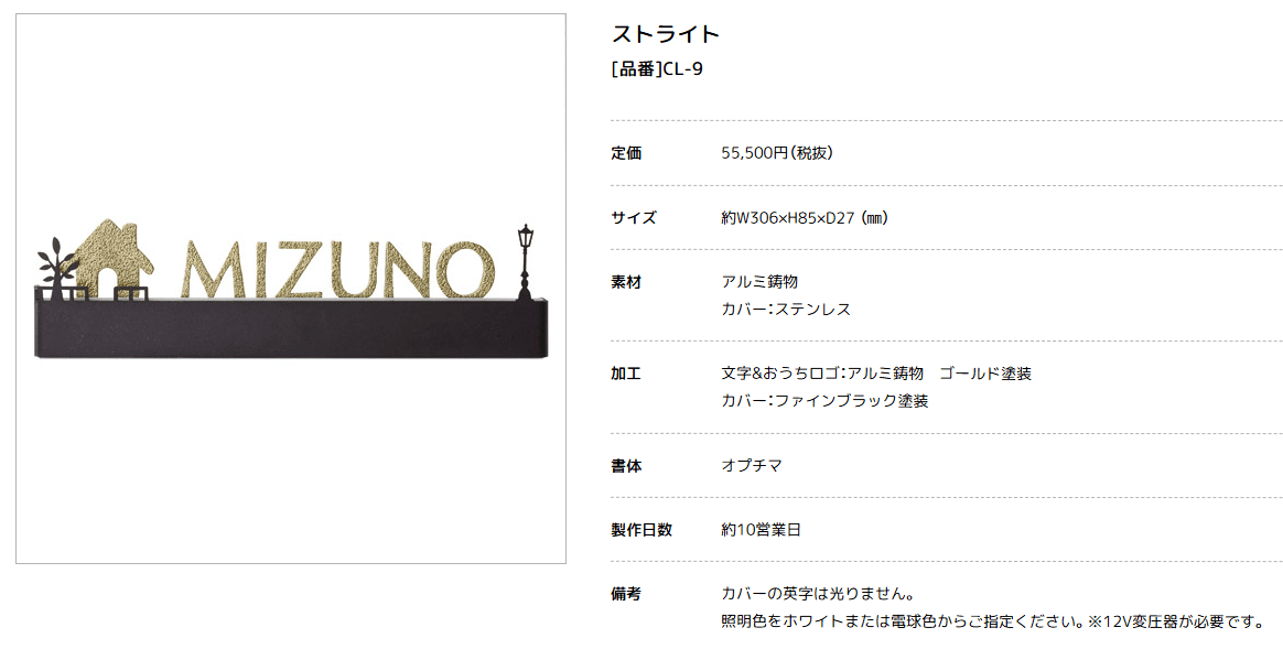 美濃クラフト CL-9 ストライト Stright LED表札 [CL-9 メーカー価格表の33%OFF+送料無料で販売中]