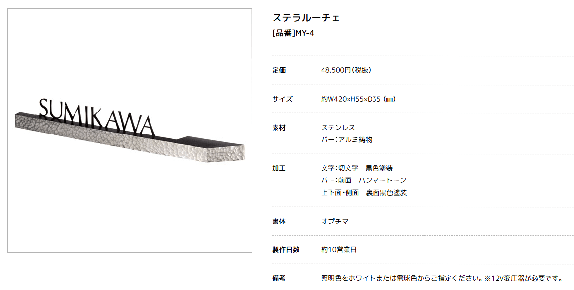 美濃クラフト MY-4 ステラルーチェ(STELA LUCE) LEDバックライト表札 [MY-4 メーカー価格表の33%OFF+送料無料で販売中]