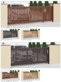 「目隠し効果のある横ルーバーの5型と、横ラインの6型の木調フェンスです」