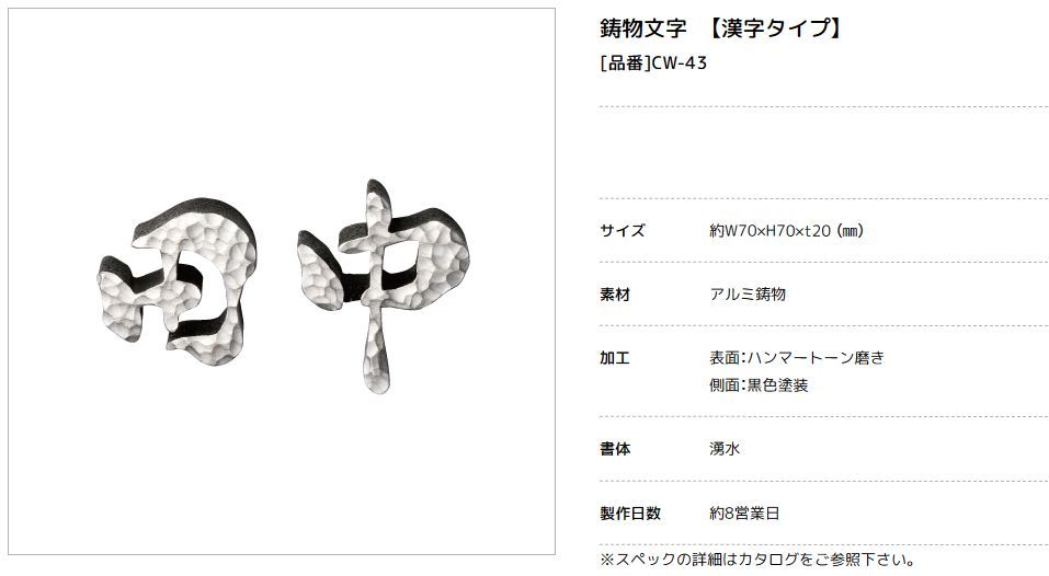 美濃クラフト CW-43 鋳物文字 漢字タイプ アルミ鋳物表札 1文字あたりのお値段です [廃盤商品の為、在庫分のみの販売となります]