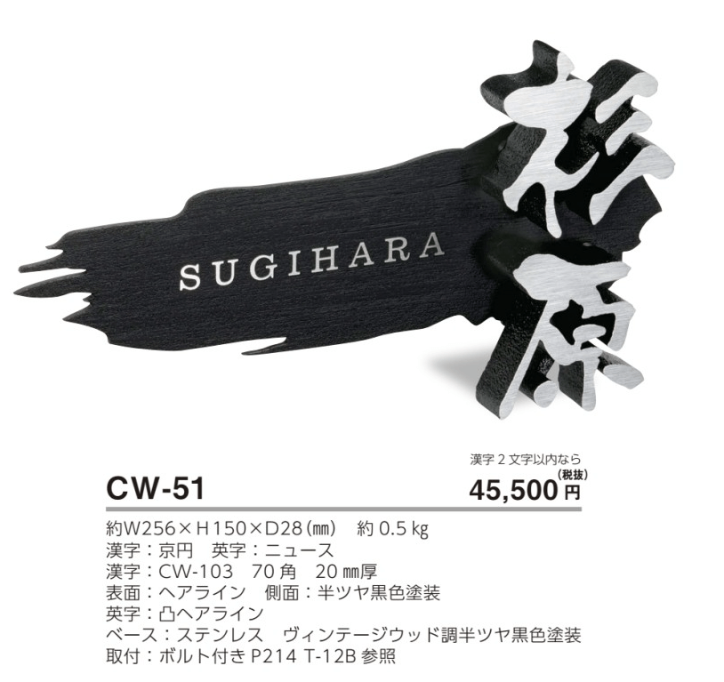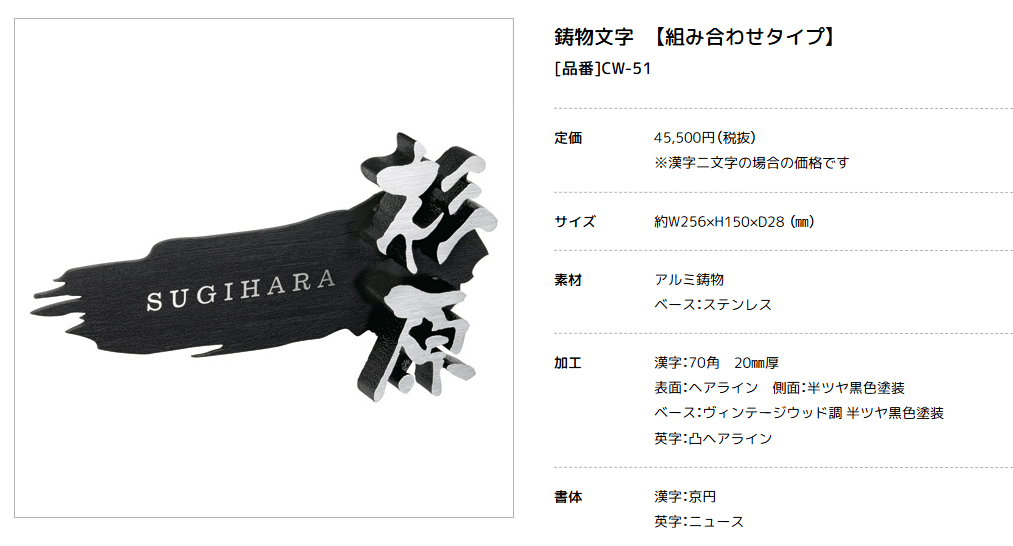 美濃クラフト CW-51 鋳物文字 組み合わせタイプ アルミ鋳物表札(鋳物文字2文字あたりのお値段です)