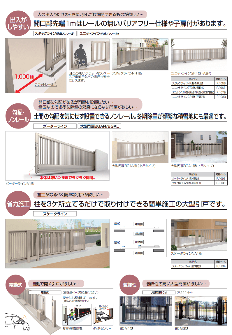 エクステリア製品でも、公共の施設(学校や役所など)のフェンスや大型門扉、