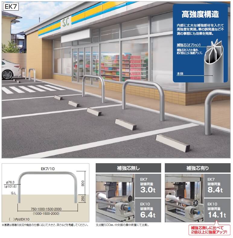 「高強度の車止め。補強芯を入れる事で、2倍以上に強度アップ!」