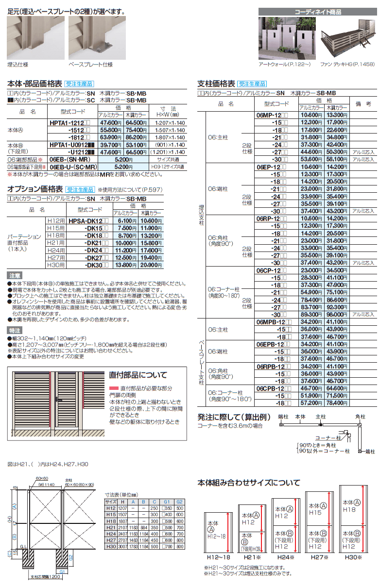 ・角柱(90°)またはコーナー柱(90〜180°) 1本