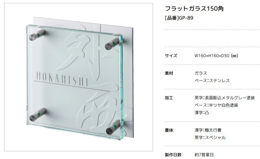 美濃クラフト GP-89 フラットガラス表札 150角 [廃盤商品となります。在庫がある分のみ対応を致します。]