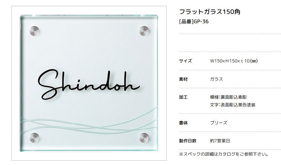 美濃クラフト GP-36 フラットガラス表札 150角 [廃盤商品となります。在庫がある分のみ対応を致します。]