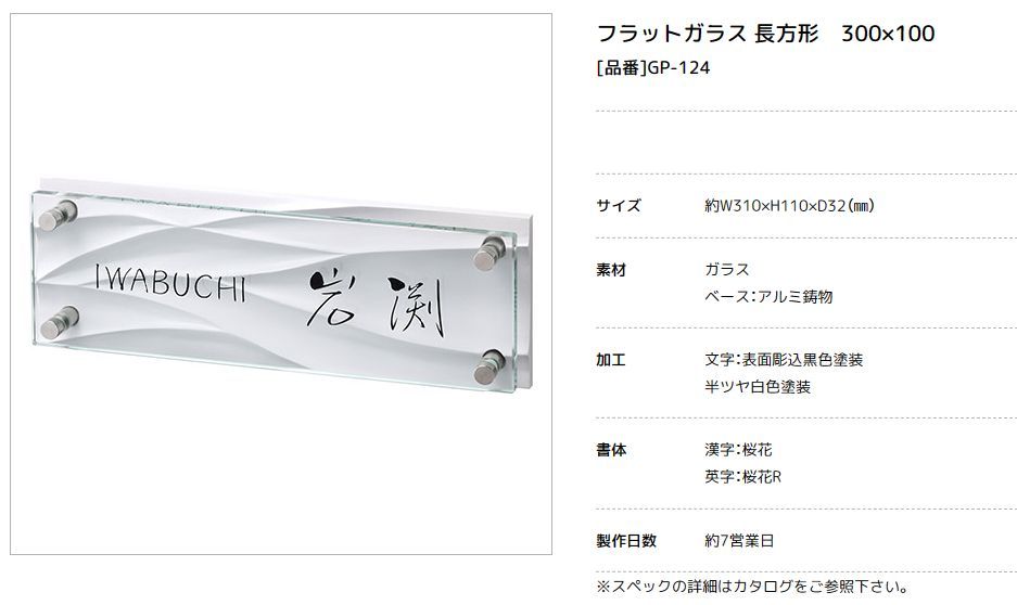 美濃クラフト GP-124 フラットガラス表札 300×100 [廃盤商品となります。在庫がある分のみ対応を致します。]