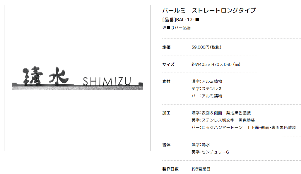 美濃クラフト BAL-12- バールミ BARME表札 ストレートロングタイプ [メーカー価格表の33%OFF+送料無料で販売中]