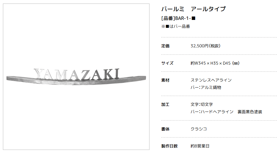 美濃クラフト BAR-1- バールミ BARME表札 アールタイプ [メーカー価格表の33%OFF+送料無料で販売中]