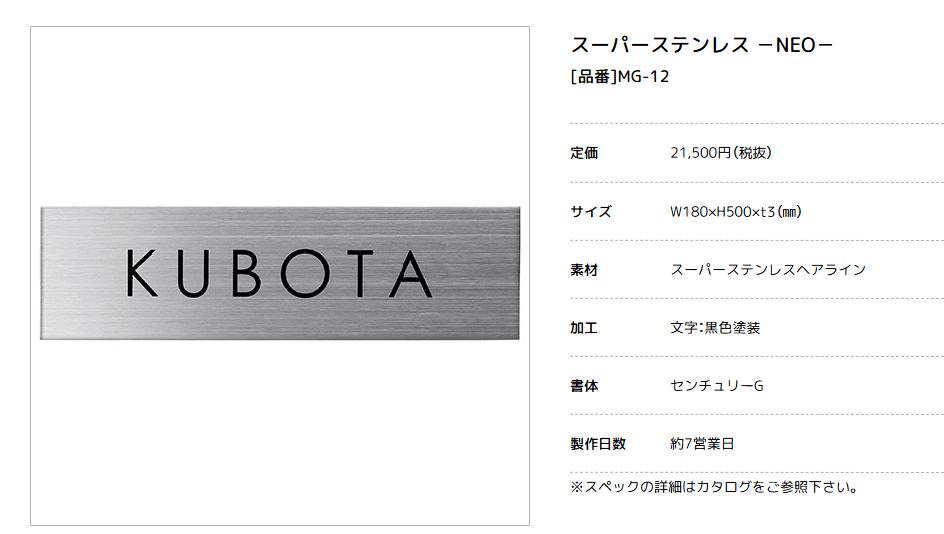 スーパーステンレス 横幅180ミリ×高さ50ミリの表札です」
