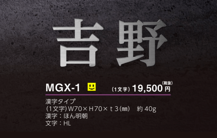 美濃クラフト MGX-1 1文字の金額です スーパーステンレス -キリモジ- SUPER STAINLESS -切文字-