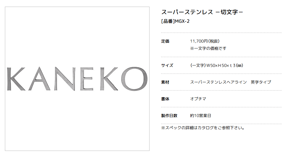 美濃クラフト MGX-2 1文字の金額です スーパーステンレス -キリモジ- SUPER STAINLESS -切文字-