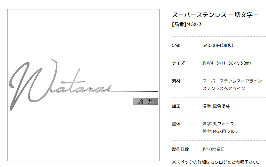 ステンレス表札の漢字部分は、お好きな書体に変更可能です。