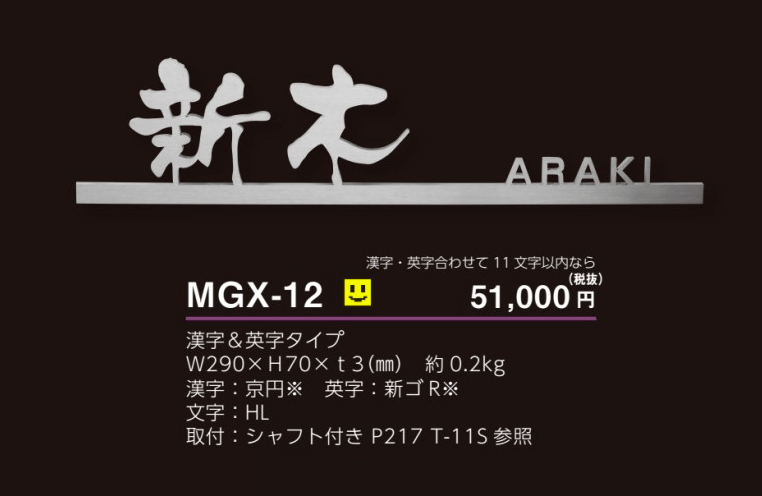 ※漢字・英字合わせて11文字以内の価格です。文字数によって、