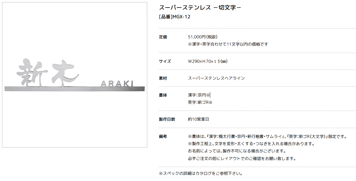 スーパーステンレス 漢字+ローマ字の切り文字表札です」