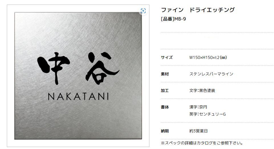 美濃クラフト MB-9 ファイン Fine ドライエッチング ステンレス表札