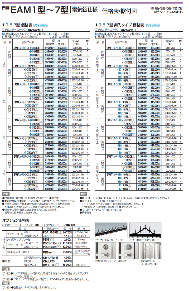 四国化成 EAM1型 2型 3型 4型 5型 6型 7型 8型 11型 13型 15型 31型 32型 標準錠 電気錠仕様