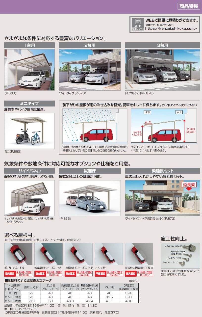 「高いコストパフォーマンス。施工性に優れたシンプルデザインの基本タイプのカーポート」です。