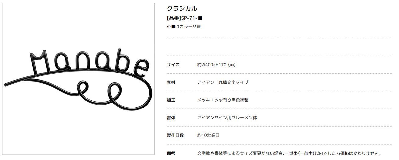 美濃クラフト SP-71- クラシカル(Classical) アイアンクラフト表札 [廃盤商品となります。在庫がある分のみ対応を致します。]