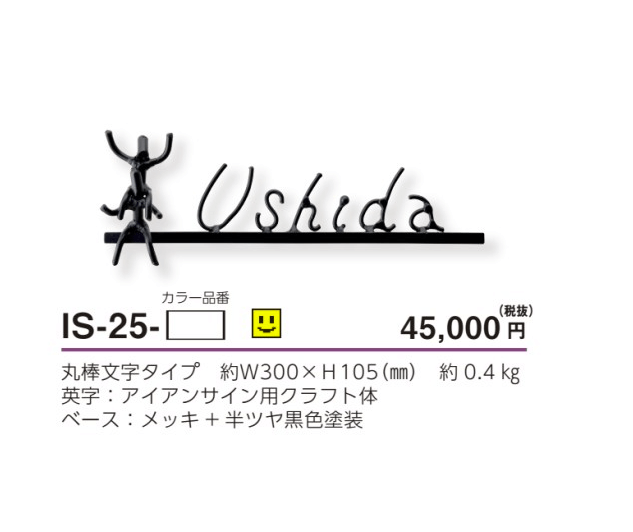IS-25とは、オリジナルのキャラクターを通じて家族の笑顔が見えてくるアイアン表札です。